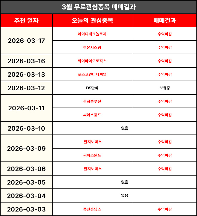 [금일 무료관심종목 결과 정리]