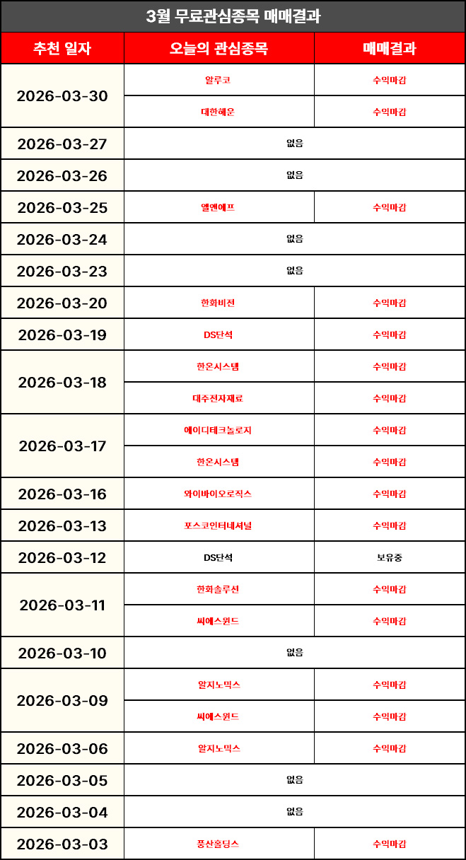 장 마감 후 무료관심종목 결산내역 올려드리도록 하겠습니다.